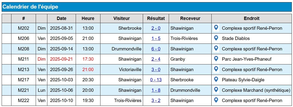 Classement, calendrier et résultats sur le site du RS.EQ (soccer)