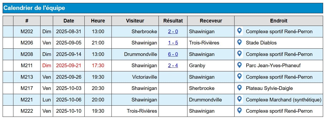 Classement, calendrier et résultats sur le site du RS.EQ (soccer)
