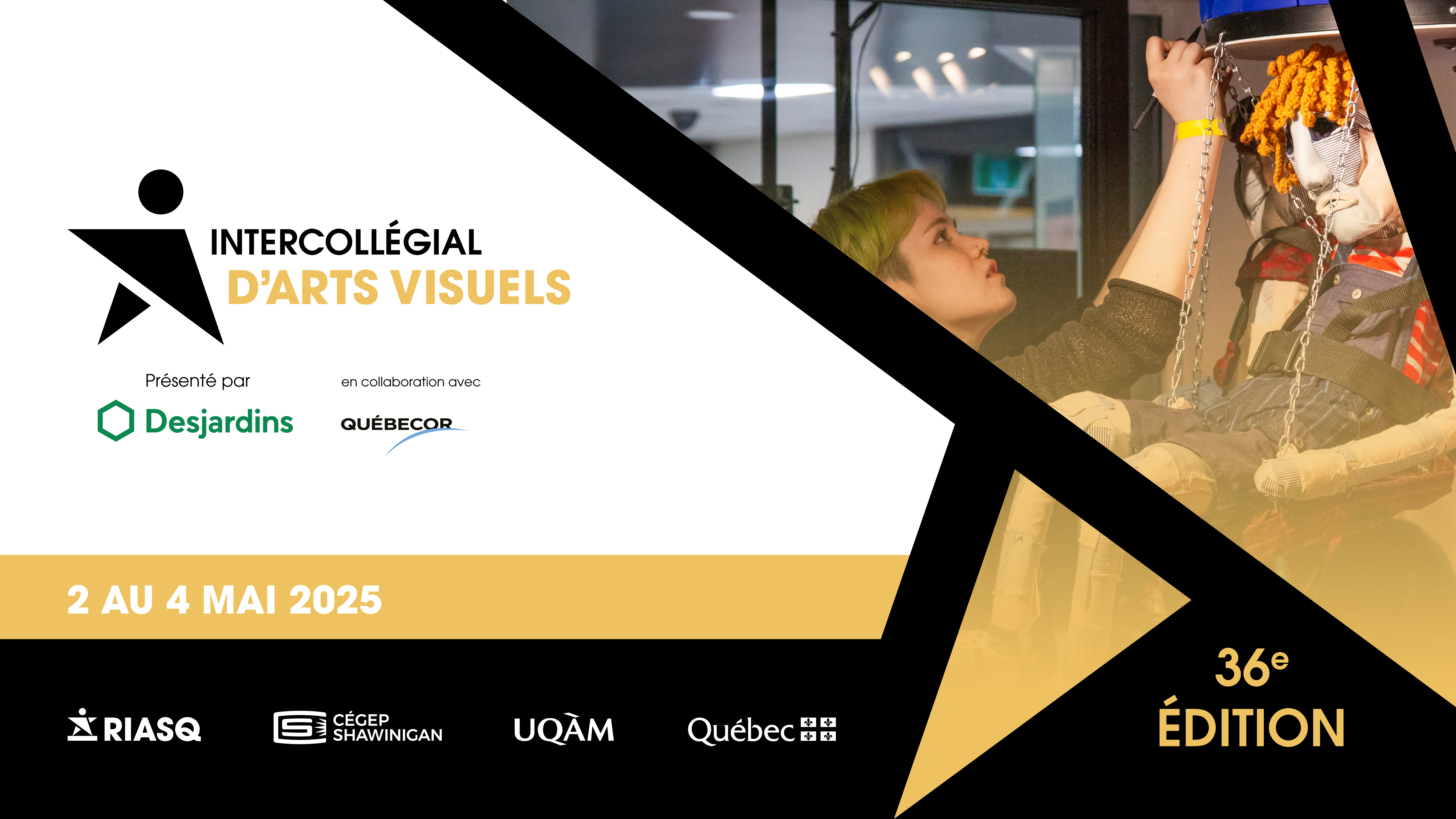 Produit par le RIASQ, l’Intercollégial d’arts visuels rassemble chaque année plus d’une centaine d’étudiants et d’étudiantes adeptes des arts visuels en milieu collégial. La 36e édition est organisée par le Cégep de Shawinigan, présentée par Desjardins en collaboration avec Québecor et rendue possible grâce à la participation du gouvernement du Québec et de l’UQAM.