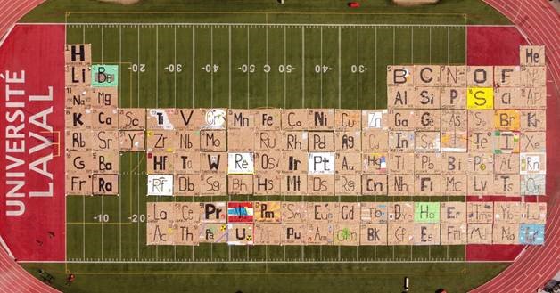 C’est le 22 septembre dernier qu’a été dévoilé le plus grand tableau périodique en matières recyclées au monde sur le terrain du Stade TELUS-Université Laval.