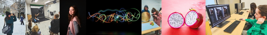 D’octobre 2025 à avril 2026, huit jeunes âgés de 10 à 13 ans ont participé à une série de six ateliers en photographie et en infographie. Pour la majorité d’entre eux, il s’agissait d’une toute première expérience en photographie. Les ateliers, conçus de manière progressive, leur ont permis de découvrir les rudiments de l’appareil réflex, d’explorer la photographie en lumière naturelle, de s’initier à la photographie de studio — tant pour le portrait que pour les aliments — et d’expérimenter des techniques créatives telles que la longue exposition en light painting.
